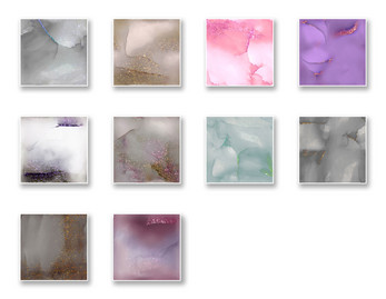 This collection features 10 seamless, high-resolution backgrounds inspired by alcohol ink art, soft watercolor diffusion, and scattered metallic glitter. Each texture blends gentle color transitions with shimmering highlights, creating ethereal surfaces perfect for character art backdrops, UI elements, overlays, mood boards, invitations, visual novels, and any piece that needs a hint of dreamy elegance. From warm gold flecks to cool iridescent sparkles, every sheet offers a unique balance of softness and shine.