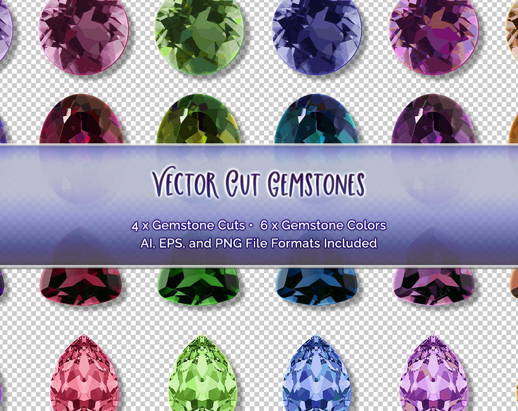 Vector Cut Gemstones - 4 Gemstone Cuts in 6 Gemstone Colors